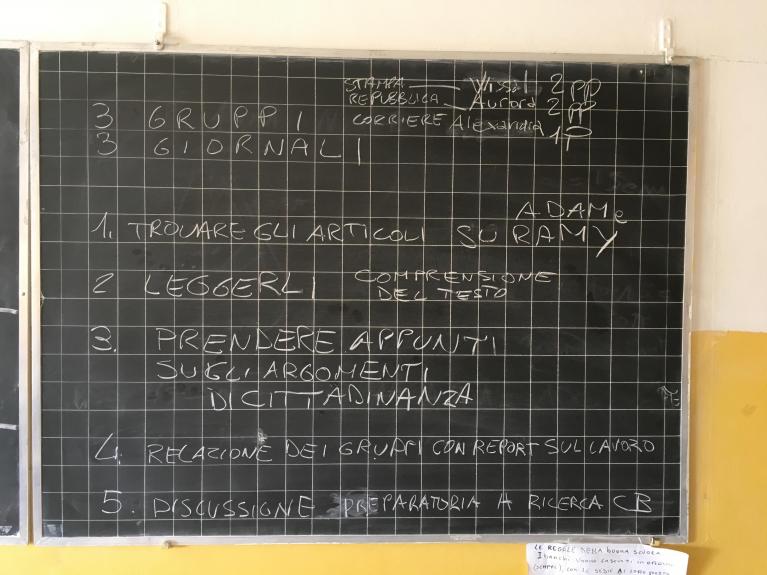 Consegno a tre gruppi i tre quotidiani che ho comprato il giorno dopo i fatti: ogni gruppo dovrà leggere e relazionare i dati essenziali; così emergono i due eroi loro coetanei, Rami e Adam; scopriamo che non sono cittadini italiani a 14 anni, anche se sono andati a scuola dalla prima elementare qui come loro. Quanti di voi in questa classe non hanno il passaporto italiano? Si alzano una dopo l’altra, timidamente, tre braccia. Rozalia, figlia di polacchi; Huda, figlia di marocchini; Samir, figlio di egiziani: cos’hanno di diverso loro tre da voi? … nulla … siete andati tutti nella stessa scuola nello stesso quartiere da otto anni, ma alcuni di voi sono italiani e loro no. Verrà il giorno in cui saranno umiliati, per questo; verranno situazioni in cui non potranno fare cose che voi potete fare; ad esempio, per iscriversi a una società di calcio dovranno aspettare oltre un mese o mesi e mesi perché le loro carte di “stranieri” siano vidimate dalla Federazione nazionale di quello sport, a Roma.