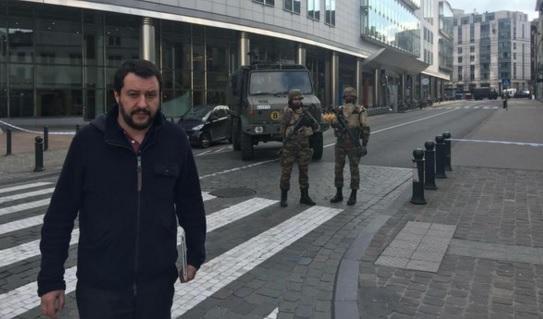 La foto di Salvini sui luoghi degli attentati di Bruxelles, diventata virale e oggetto di proliferazione memetica (22 marzo 2016).