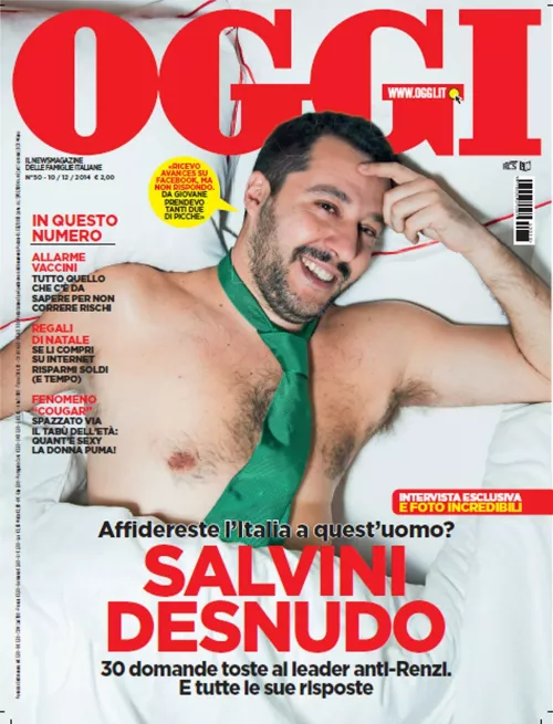 Salvini ha saputo rendersi ubiquo, sublimandosi in icona, maschera, simulacro, perpetrazione del proprio stesso personaggio, in qualche modo disinnescandolo, disinnescandosi. Se ci sei sempre, finisce che non ci si accorge più che ci sei, chi sei e che dici, diventi parte dell’ambiente (eccola, ancora, la naturalizzazione). È difficile immaginare che la ragazzina del selfie sappia qualcosa delle politiche promosse da Salvini. Più facile immaginare che in lui abbia riconosciuto il personaggio, “quello della televisione”, “quello di Facebook” (così come le signore avranno ritrovato “quello della copertina di Oggi”). Un po’ come accade al ragazzino de La mafia uccide solo d’estate (il film di Pif del 2013), che per carnevale si veste da Andreotti, lo strano idolo personale di cui conosce tutte le battute a effetto ma di cui, in fondo, non sa nulla.