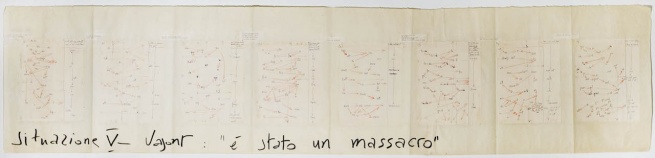 La pagina sulla tragedia del Vajont della partitura della Fabbrica illuminata (1964, testi di Giuliano Scabia, musica di Luigi Nono)