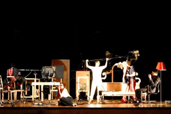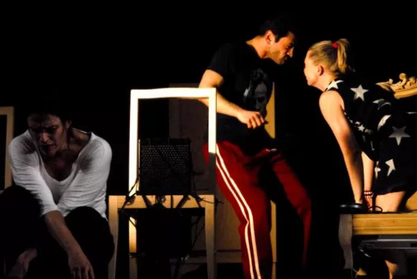 Ma la vivacità dell’immaginario pop continuamente richiamata dallo spettacolo è solo un feroce contrappunto: l’altra cifra del lavoro si sviluppa verso ulteriori toni e direzioni, che vanno insieme a costruire una sorta di grumo nero, inquietante quanto preciso, al cuore del disfacimento del Sogno americano (e occidentale). La regia di Latella consegna al pubblico un Tram dall’impostazione decisamente astratta e minimalista: pochi tratti di colore in un preciso contrappunto di luce e ombra scandito dal candore dei mobili – ossature di arredi montate su ruote, sovrappopolati di luci e microfoni quasi fosse un set cinematografico – e dal nero del fondale; costumi semplici (jeans, tute e t-shirt), pochi accessori e ancor meno “effetti speciali” di grande semplicità ed efficacia; l’azione è ridotta all’osso, così come l’interpretazione degli attori – scarnificate entrambe dalla possanza della parola (e dallo straordinario lavoro vocale della compagnia). Nessun cedimento emotivo per uno spettacolo che viene continuamente descritto o previsto dalla “didascalia vivente” (Rosario Tedesco, anche dottore di Blanche), una cifra ormai distintiva di Latella che sembra ammiccare a una interessante “terza via” di rapporto con il pubblico per il teatro di regia fatta di un intreccio di immedesimazione e straniamento, di astrazione e realismo.