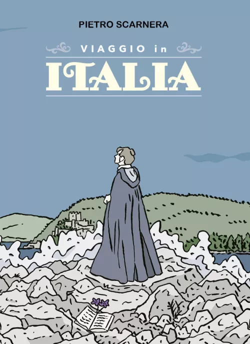 Ad attrarre questi viaggiatori concorrono storicamente alcuni fattori dominanti. In primo luogo la caratura che riveste la storia d’Italia come laboratorio di sperimentazione politica e fondamento culturale dell’identità europea: fin dal primo Cristianesimo e dalla Roma imperiale, passando per la trasformazione dell’Impero nell’alto e nel basso Medioevo, la nascita dei Comuni come nuova forma di gestione territoriale, la rinnovata passione per il mondo classico del movimento umanista, poi il lustro del Rinascimento e del Barocco che hanno rivestito d’arte le città italiane, fino al crescente interessamento degli artisti per le vicende politiche, dal Risorgimento in avanti, l’Italia ha sempre rappresentato un nucleo di interesse primario per chiunque volesse raccogliere i segni del passaggio tra un’epoca e l’altra della storia europea. Il secondo elemento che fa del nostro paese una meta di assoluto interesse è invece dato da una ricchezza ambientale e dunque paesaggistica molteplice, un territorio esteso per un’ampia latitudine, attraversato da montagne e colline che ospitano molti fiumi e circondato per due terzi dal mare. Ma se c’è un elemento che ricorre nei pensieri degli intellettuali e artisti apparsi nelle pagine disegnate da Scarnera è una sorta di ibridazione tra la storia e il paesaggio, quella forma di ricerca intima sviluppata dalla sensibilità di ognuno che muta in modo concreto la vita interiore, insinuata dal turbamento ma allo stesso tempo arricchita da una maggiore coscienza di sé. Johann Wolfgang Goethe, forse il maggiore tra gli “esploratori” d’Italia, che non a caso appare per primo nel racconto di Scarnera, fa della contemplazione il primo impulso di ricerca, lasciando al silenzio il compito di accogliere le riflessioni suggerite dallo sguardo; nello scrittore capofila del romanticismo tedesco, cui si deve un volume omonimo pubblicato nel 1816-17, emergono gli elementi che attraversano molti dei viaggiatori qui raccolti: lo stupore dell’estensione che certe vedute panoramiche sanno stimolare, l’effetto singolare che dall’immagine statica produce un dinamismo accelerato del pensiero, infine la ricerca di una meccanica epifanica, quella disponibilità ad accogliere i segni dell’osservazione ogni volta come una sorprendente apparizione. Questa continua e complessa tensione tra sguardo osservante e spazio osservato incarna uno degli aspetti più interessanti del libro di Scarnera, il cui disegno naturalistico, di pochi ma significativi tratti, attraversa costumi e ambientazioni di varie epoche, scegliendo una nettezza cromatica a tinta tenue che maggiormente permette di apprezzare la vastità paesaggistica.