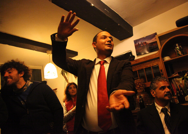 La strada scorre: Dijon. Scende la notte, e intanto Abu Nawar ci racconta di come ha incontrato Mona, grazie ad un’amica comune, e di come dal primo momento avesse capito che lei sarebbe stata la donna della sua vita. Ci propone pezzi di musica siriana dal suo cellulare, e canta ondeggiando con il cappello a tesa larga. Mona dorme. Ancora torroncini. Siamo a Nancy. Il confine con il Lussemburgo è vicino. Ci fermiamo a decidere come andare. È un momento delicato, perché si tratta di due confini ravvicinati, quelli del Lussemburgo. Ci sarà un’auto sonda con solo italiani a bordo, e poi le altre a scalare, fino al furgone delle attrezzature. Lo stomaco si stringe di nuovo, nel freddo buio della piazzola di sosta di Nancy. Cerchiamo tutti il sangue freddo improvvisato, perché nessuno di noi è sicuro di quello che sta facendo. La passione è tanta, ma siamo anche consapevoli del nostro essere improvvisati, in abiti improbabili, guidatori distratti e passeggeri stralunati che stanno cercando di cambiare un pezzettino di storia. Non quella con la S maiuscola, ma le storie private di queste cinque persone, che stanno inseguendo la possibilità di vivere dove vogliono. Quando ho chiesto a Abu Nawar: “Perché vuoi andare in Svezia?”, lui mi ha guardato sorridente: “Per poter avere i documenti e portare mia moglie Mona a visitare Parigi, Roma, e le Piramidi. Perché i miei figli possano raggiungerci, e possano avere finalmente dei documenti, ed essere davvero liberi. In Siria, in Palestina, liberi non lo siamo stati mai. Non sappiamo cosa voglia dire”. È questa la storia che stiamo cercando di cambiare, accompagnando un farmacista e attivista politico e l’amatissima moglie nel paese di Santa Lucia. La loro biografia, e quella dei loro figli.