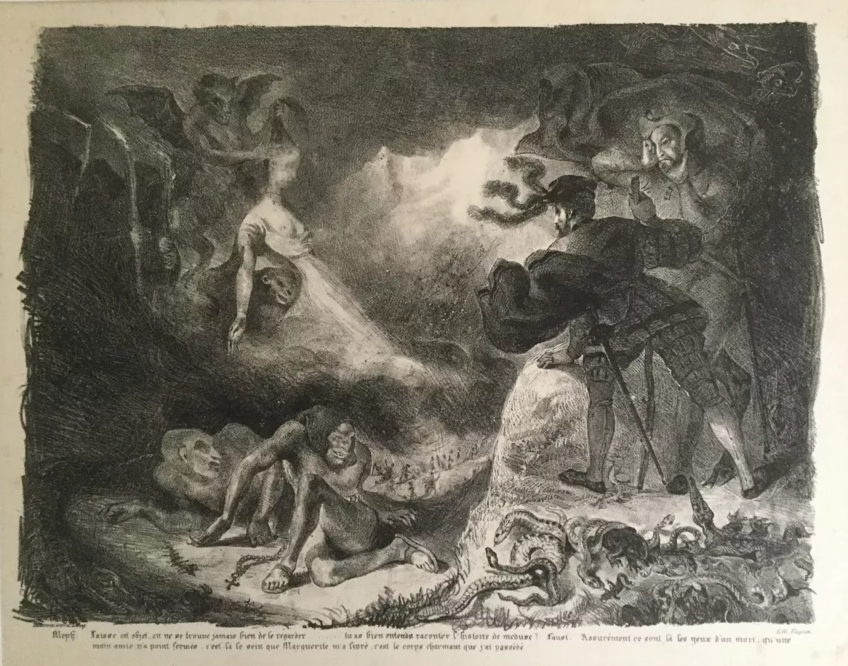L’intermittente, l’anelante Faust, che ha ereditato il tratto prometeico del Satana miltoniano, simboleggia la poesia; il misurato, beffardo Mefistofele incarna la prosa. Lui sì che sa stare nel presente. Vagheggia godimenti egoistici, immediati, crassi. Diffida delle sublimazioni. Stenta a capire i progetti ideali e sentimentali del dotto, ma quando ne smonta l’ideologia dimostra di essere non meno loico dei suoi colleghi danteschi. Ammutolisce solo di fronte alla serenità classica, che nella tranquilla abitudine al nudo è impermeabile ai suoi motteggi da adolescente compiaciuto di scoprire le vergogne. Come Iago, il sottodiavolo goethiano non è forse che un critico, e può solo fare battute o demolire: “Io sono lo Spirito che sempre nega. Ed a ragione; perché tutto ciò che nasce merita di perire; perciò meglio sarebbe che niente nascesse”. Anche qui torna in mente il vero eroe del Paradiso perduto, là dove confessa che “only in destroying I find ease / To my relentless thoughts”. Solo sprofondando nel male Satana può dimenticarlo per un attimo; e fuori dal male non ha punti d’appoggio. “Which way I fly is hell; myself am hell” dice in un altro passo.