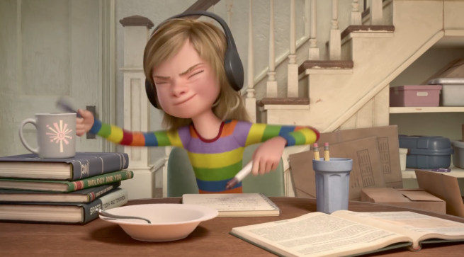 Sul fatto che l’idea di rappresentare il pensiero e il comportamento attraverso la metafora della mente sia un espediente narrativo già largamente utilizzato in ogni ambito della produzione culturale, dalla filosofia alla psicologia, dalla pubblicità al cinema fino ai nostri amati cartoon si è già scritto molto (in particolare, ho apprezzato questa bella dissertazione di Raffaele Alberto Ventura). In questo senso, Inside Out può essere ben definito come un’opera didascalica; si tratta di vero e proprio storytelling, volto a far intendere il funzionamento di un modello teorico (di matrice psicologico-cognitivista) anche molto complesso attraverso la drammatizzazione di alcuni suoi processi.