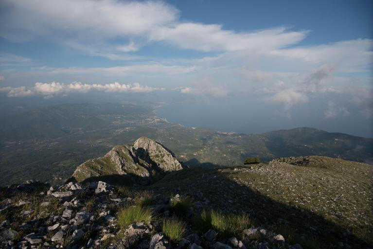 Claudia Losi: Sono arrivata in una giornata di sole splendido, verso marzo 2017. I sopralluoghi sono iniziati dal mare, per poi salire in esplorazione sul versante del Monte Bulgheria verso Licusati, tra le sue rocce carsiche di un bianco accecante. Era primavera solo da pochi giorni ma già molta vegetazione era in fiore. Piante pioniere rigogliose e pronte a colonizzare nuovi siti.
