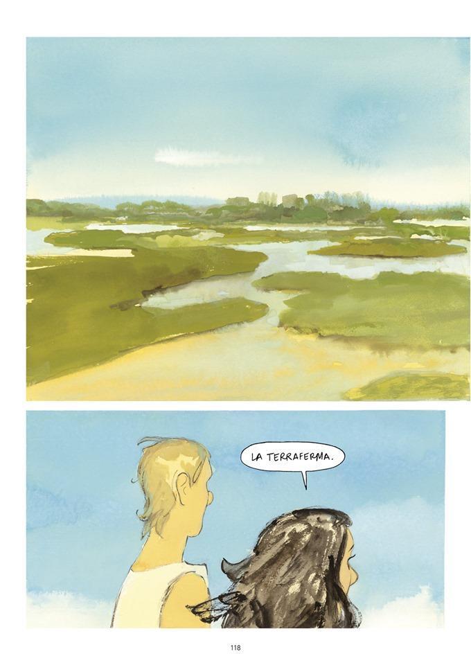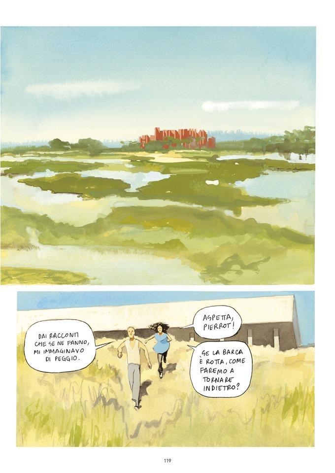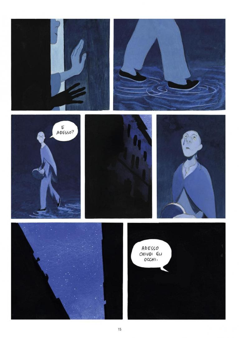 “Quando Hitchcock ha trovato la casa di Psycho aveva già trovato il 50% del film. Vale anche per l’hotel di Shining, in alcuni casi i luoghi diventano personaggi alla pari degli altri. A un certo punto ho capito che Venezia era il setting giusto per questo libro. Anche se ignoro completamente la trama, il luogo dove succedono le cose dev’essere sempre molto preciso nella mia testa, anche se non è citato. È stato così per L’intervista, per Cinquemila chilometri al secondo, anche per La signorina Else che è un adattamento [dall’omonima novella di Arthur Schintzler, NdR] ma mi interessava tantissimo il grand hotel, la villeggiatura in montagna dei ricchi”. A Venezia Manuele Fior ci è vissuto, ha studiato lì Architettura, poi ha passato alcuni anni in giro per l’Europa e non solo, prima di stabilirsi a Parigi. “Siccome mi sono trasferito tantissime volte in vita mia, fa parte del mio carattere avere sempre una grande nostalgia dei luoghi, che idealizza molto il passato, i posti, le amicizie… volevo rioccuparmi di Venezia, ci sono certi ricordi personali che rientrano nella storia, chiaramente deformati”.