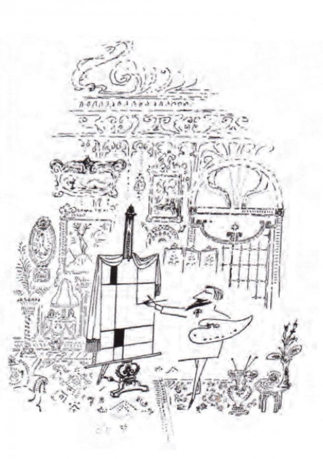 Steinberg contempla il soffitto su cui si dipana un affresco raccapricciante,nella tradizione perbenista inaugurata da Puvis de Chavannes:“Per sbarazzarsi delle cose troppo nobili che dipingeva negli edifici pubblici, Puvis a casa faceva disegni sconci. Non fatico a immaginarmelo mentre picchia sua moglie”.