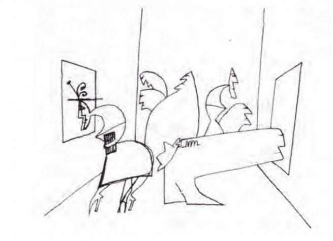 E, alleggerita, vola fuori dalla finestra: appartiene ormai alle cose. Basta stravolgere i normali circuiti fra segno e significato. L’uomo che con i suoi disegni punta a offuscare la comunicazione dice:“Sono diventato moralista senza volerlo”.