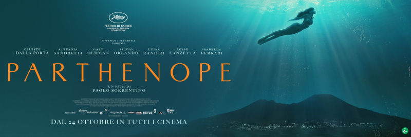 Napoli, il posto da cui partiva il protagonista autobiografico di È stata la mano di Dio (2021), nel finale del film, torna anche in Parthenope come spazio da cui allontanarsi, proprio come farà, da adulta, la protagonista, che non tornerà più per trent’anni. Ma Napoli, come corpo e volto in scena, è anche lo schermo contraddittorio su cui proiettare, trasfigurandolo e deformandolo, un modo di stare e di guardare, sia la città sia il proprio passato: che è duplice, anfibio, come si diceva anche sopra. Il film cerca di tenere insieme, infatti, sia un’esperienza di Napoli come mondo sottomarino, corporale, impuro, osceno, imbruttito; sia un tentativo di concettualizzazione e di risposta pronta, come aveva detto Parthenope a Flora parlando del lavoro degli attori; un modo che trova spazio nelle frasi apodittiche pronunciate dai vari personaggi che portano la propria solitudine per il mondo; incluso il professore di antropologia (Silvio Orlando) con cui si laurea Parthenope.