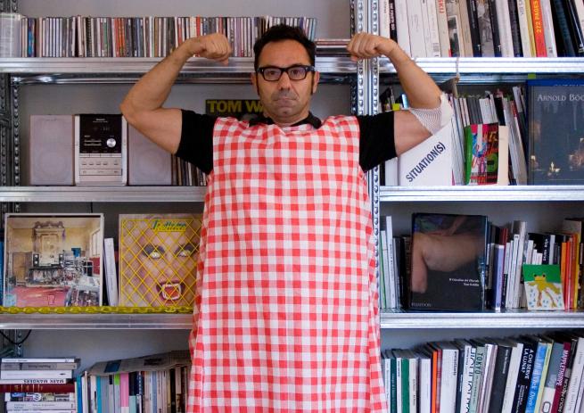 Se leggiamo i tuoi aformismi da punti di vista per così dire teatrali, attenti ai personaggi che inscenano e alle drammaturgie che propongono, osserviamo che all’origine del tuo processo creativo è una scissione (o una dualità) che possiamo ricondurre alla contrapposizione globale|locale, imperiale|provinciale, italiano|internazionale. In altre parole: ti accendi e “inventi” quando il conflitto tra le due dimensioni del “nativo” e dello “straniero” trova accattivanti costumi di scena e riesce a esprimersi in forme umoristiche, sottilmente corrosive. Elenco gli alter ego che ti scegli: Pier Paolo Pasolini, Marlon Brando di Casalpusterlengo, Maurizio Cattelan, il barbiere, il pizzaiolo, il mago Silvan. Il “tamarro” li riassume quasi tutti, e finisce per diventare la maschera programmatica in questa tua reinvenzione della commedia dell’arte in chiave nazional-popolare. Ricordo, anni fa, una nostra conversazione su Thomas Hirschhorn: mi manifestavi la tua volontà di allestire qualcosa come un antagonismo. La circostanza investe in pieno l’attività di artista, l’appartenenza a tratti schizoide a due distinte (e spesso divergenti) tradizioni. Parlami del tuo proposito “anti-Form”.