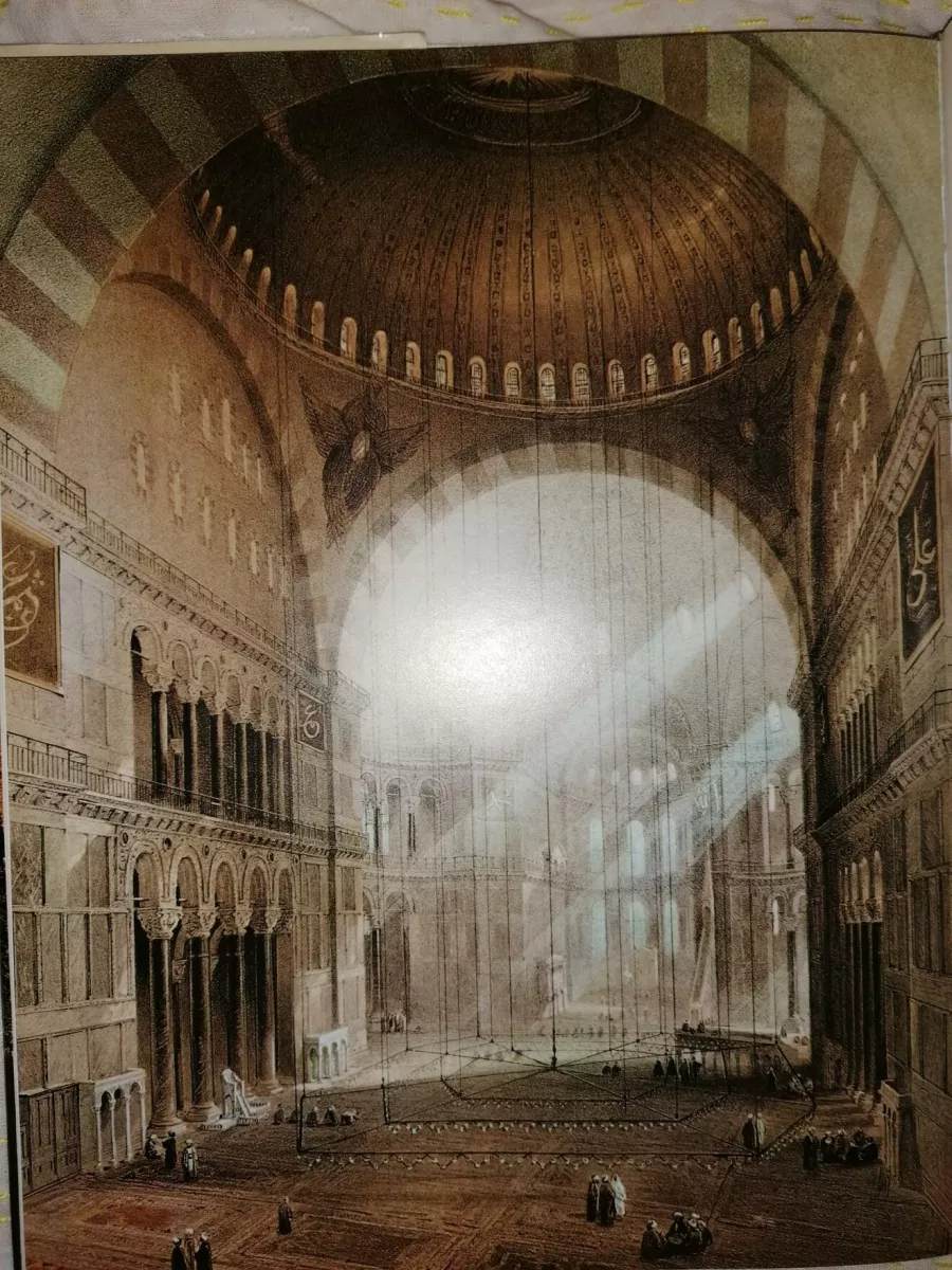 Ma oggi a riguardare quel libro subisco anche la fascinazione della onesta e minuziosa ricostruzione storica, attraverso riproduzioni di disegni, fotografie, mappe, ingrandimenti, suggestioni diverse di un monumento che ha subito nei secoli devastazioni, saccheggi, incendi, terremoti, crolli, e poi ricostruzioni, ristrutturazioni, reinvestendolo ogni volta di un nuovo significato simbolico. Prima di essere costruito, era già nella mente di Costantino, che vagheggiava per Costantinopoli, la “Seconda Roma”, una “grande chiesa” che fosse vero santuario per tutta la cristianità e dunque per tutto l’impero. La basilica, che fu inaugurata nel 360 dall’imperatore Costanzo II, attingendo alle tecniche della grande architettura imperiale, poco dopo fu distrutta da un incendio; di nuovo ricostruita, di nuovo incendiata, fu poi inaugurata di nuovo nel 537 dall’imperatore Giustiniano. Legni pregiati, marmi, quintali d’oro, il lavoro di migliaia di operai: nulla fu risparmiato per dare grandiosità a quel tempio, che fu però sempre mira di sogni impropri. All’avvento dello scisma tra Oriente e Occidente la chiesa fu convertita in cattedrale ortodossa, sede del Patriarcato di Costantinopoli, poi riconvertita dai soldati della IV crociata in cattedrale cattolica di rito romano, poi ancora sede della Chiesa ortodossa, che ritrovò in quello splendore, in quelle cupole, in quei mosaici, in quelle luci (l’immensa cupola appare leggera per le quaranta finestre di luce che la circondano), l’intelaiatura della sua “teologia della bellezza”.
