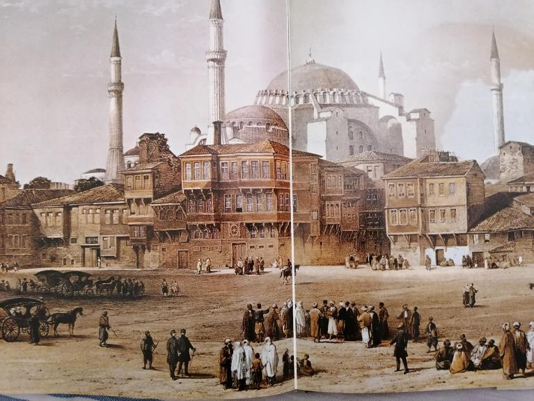 Due architetti svizzeri, Gaspare e Giuseppe Fossati, ricevettero nel 1846 l’incarico dal sultano Abdul Megid di restaurare la moschea. I due fratelli dovettero demolire gli edifici all’esterno per puntellarne le mura.