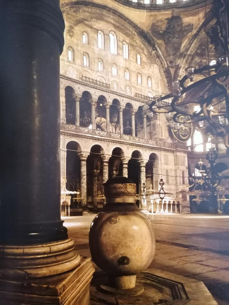 Il fascino, per me, è dovuto anche alle reminiscenze di un viaggio, compiuto in Turchia, verso la metà degli anni Ottanta, un viaggio povero e avventuroso, pieno di pensieri, di sguardo, di bellezza, di conoscenza. Entrammo ad Ayasofya (il nome turco sul calco di quello greco, Aghia Sophia) con un sentimento di ammirazione, quasi di orgoglio, al pensiero che in quel paese – in cui vedevamo convivere un’anima laica e una musulmana – esistesse un luogo così, un po’ come una casa di preghiera e di pensiero per tutti i popoli.