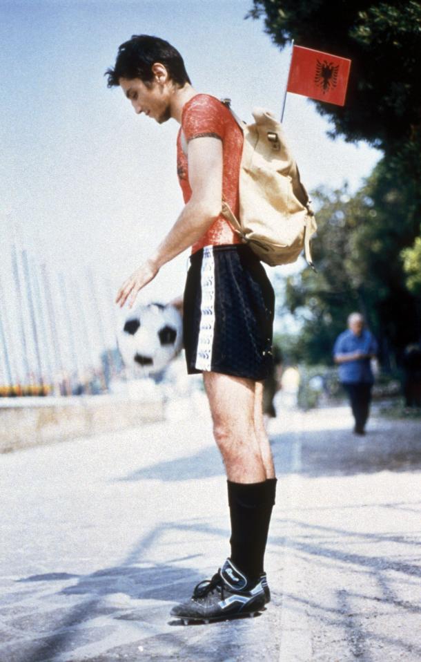 La condizione dell’apolide, dell’immigrato clandestino senza statuto legale, la perdita del legame con il territorio, viene rappresentata nell’opera di Xhafa da un giocatore solitario al di fuori del campo di gioco, perso nel tentativo vano di instaurare una qualsiasi relazione che lo possa far uscire dalla condizione di invisibilità.