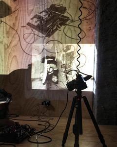 È nato perché Gianluca è un grande amico. Lui suonava e abbiamo collegato la musica e le performances sonore. L'ho fotografato in diversi momenti. In alcune foto ci sono anch'io vestito da donna. Il 90% delle foto sono su pellicola. È una specie di tributo al suo personaggio. Ora è il mio collaboratore, mi aiuta. Ho fatto molte cose con lui. Abbiamo anche aperto insieme ad altri amici il Btomic, qui a Spezia. Tra poco dovrebbe arrivare, mi dice…