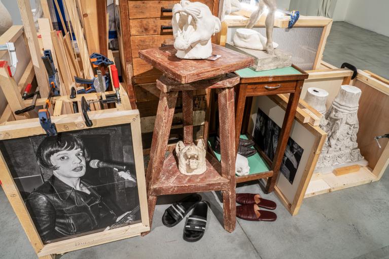 Questo ti dà un senso di vuoto, di partenza, proprio come quando parti che svuoti un armadio. Poi hai ragione a dire che la mia presenza qui è tanta. Così si è riempito di nuovo. E in particolare si riempie di cose che posso fare adesso, come provare le performances, oppure lavorare sull'archivio, che non ho portato per questioni di sicurezza, anche perché ci lavoro molto. L'idea che è venuta quando sono state qui Cristina Perrella e Elena Magini era quella di svuotare tutto e riempire il Centro Pecci. Era quella di creare una situazione con il mio studio a Prato, ma non perché si potesse dire "ah! lo studio dell'artista!". Comunque il vuoto è anche il cambiamento. Ti svuoti e ricominci. Questa cosa mi ha svuotato un po' a livello mentale e mi ha liberato di tante cose. Mi ha permesso di capire come posso muovermi dopo. Per esempio, questa idea di installazione che è in me da anni, sta prendendo forma. Il fatto di accatastare mobili e metterci le foto intorno, è un esempio. Non devo per forza appendere le foto al muro. Mi piace sempre di più l'idea di appoggiarle e questo crea delle sculture. Le fotografie ci sono, ma la cosa più importante è tutto quello che c'è intorno. Comunque sono legato ancora molto alla fotografia perché è il mio mezzo, mi aiuta a fare altre cose, come le performances. Perciò la fotografia è in primis su tutto. Va bene? Ti ho spiegato il vuoto?