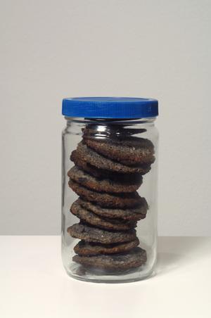 Custodite sotto forma di libro, ogni tanto le apre e con la cenere prepara dei cookies, che un amico di cui Baldessari non rivela l’identità assaggia, in un ideale prosieguo delle uova sode firmate da Manzoni.
