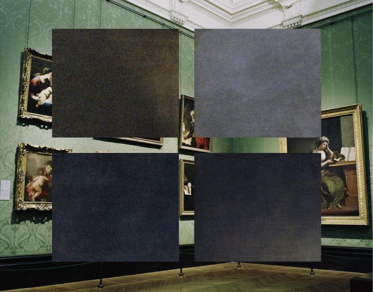 C'è, ancora una volta, un riferimento alla pittura in queste opere. Alcune usano immagini di vecchi dipinti di maestri in interni di musei, ma più in generale una tavolozza selettiva di colori è tratta da ogni fotografia e ricollocata al suo interno come un equivalente astratto del quadro sottostante. I rettangoli colorati sono infatti piccoli dettagli di quelle immagini, molto ingranditi in modo da avere una consistenza quasi pittorica e anche la struttura della grana fotografica.