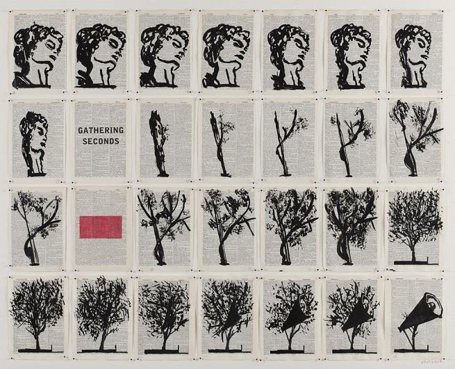 Riflessioni che riguardano la percezione del mondo si alternano a pensieri istantanei di carattere logistico e abitudinario e, ancora, a riferimenti a parole di altri... Ancora una volta l'artista è come se ci portasse in studio, dentro al movimento del suo pensare e fare. Accanto alle parole infatti, nei disegni in movimento, lo vediamo camminare, stare seduto, saltare, lo ritroviamo nel suo spazio di produzione... Pesanti, queste parole, nell'ultima serie di grandi incisioni (Just Add Ink, 2012; Hope in the Green Leaves, 2013; If you have no Eye, 2014) diventano poi i frutti di alberi colmi di sentenze.
