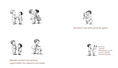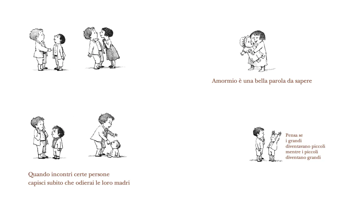 Un vero e proprio trattato di anarchia sentimentale per piccoli in cui niente è lezioso, tutto è appassionato, lieve e, accanto alla furiosa fascinazione per l’amica o l’amico, appare, improvviso, lo scarto dell’irritazione: