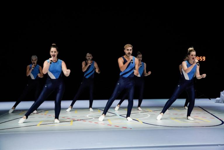 Dopo il tennis di Calamaro, ancora di sport raccontano gli olandesi Club Gewalt in Yuri, ascesa, sacrifici, precipizi e cadute di un ginnasta, col doping, la droga, la fatica come sfondo. Il limite da combattere, da battere, diventa un ritmico incalzante perfetto balletto, come un coro irridente e popolare, come un nuoto sincronizzato che ci trascina (molto meglio del Dragon di Santarcangelo, a proposito di teatro e sport), con la sua ironica apparente insulsaggine quasi da boys&girls di qualche vecchio Studio Uno, in un epico racconto Dada sulla tensione, il fallimento, l’ansia da prestazione.