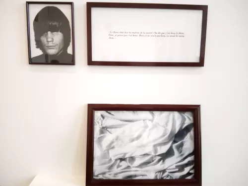 Mi rendo conto che il mio resoconto di À toi de faire, ma mignonne (ah! dimenticavo, questo è il titolo della mostra) è stato ampiamente assorbito da una sola delle prime sale del percorso. Nel frattempo, Véronique ha inviato un sms dicendo che lei ha già completato il giro (ha visto tutto) e ci attende, seduta su una panchina, nei giardini del palazzo. Che esagerazione! Ci dirà che non sopporta questa “star” dell’arte francese e il suo ego strabordante. Mylène (mia moglie), invece, percorrendo le sale basse, piccole e innumeri del sottotetto, si è infilata per sbaglio, con altri due visitatori, in una stanza occupata da Sophie Calle in carne e ossa, attorniata da conservatori o tizi dall’aria importante. Non si sono nemmeno rivolti ai poveri intrusi, ma hanno tutti protestato seccamente: “Non, mais ce n’est pas possible”. La porta, però, l’avevano lasciato aperta loro. Poco importa, tutto ciò aggiunge un aspetto ulteriormente gustoso alla mostra: l’antipatia snobistica dell’artista e della corte di specialisti dell’arte che la circondano. Nessuna contraddizione d’altra parte. Percorrendo le sue varie opere, i suoi vari progetti, appare evidente che la Calle non fa nulla per essere simpatica, o modesta, o rispettosa. Si percepisce un po’ ovunque uno spirito irriverente, a tratti sarcastico, che non risparmia niente e nessuno, a partire da se stessa.