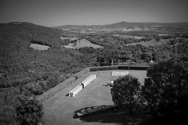 o da un’altezza e da una distanza tali da rimpicciolire l’evento per consegnarlo a una dimensione cosmica. È come se qui l’artista volesse trasporre il giorno delle nozze, nella sua eccezionalità gioiosa, su una scala diversa, con una poetica che definirei della relatività e caducità delle vicende umane: