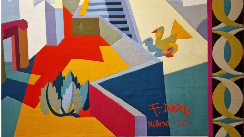 Tuttavia, i protagonisti di maggior impatto visivo ed emotivo della rassegna mantovana sono gli arazzi in tarsie di panno, tra le produzioni più famose della Casa d’Arte Futurista Depero, che avrebbe chiuso nel 1942, mentre il maestro avrebbe trascorso gli ultimi anni della propria vita a progettare e a costruire la Casa Museo Depero, con un credo nel valore del proprio lavoro artistico incrollabile ed encomiabile, convinto che il tempo gli avrebbe tributato i riconoscimenti che meritava.