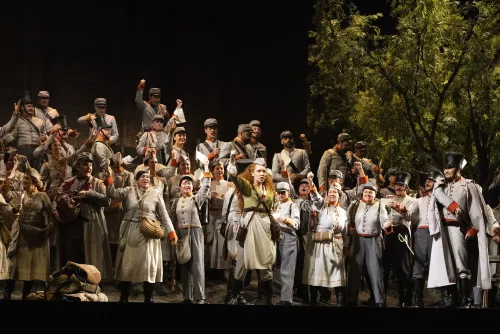 Bisogna aggiungere, però, che se anche il guizzo nel finale ha offerto una chiave di lettura più convincente, adottando un drammatico radicalismo dell’immaginario che sarebbe stato utile anche prima, in generale la regia di Muscato ha lasciato in secondo piano un altro protagonista fondamentale della Forza del destino: il popolo, il Quarto Stato alla maniera di Verdi, come in anni ormai lontani lo definirono – in maniera che rimane illuminante – Massimo Mila e Rubens Tedeschi. Che non è fatto solo di soldati e crocerossine, o di sventurati profughi (come all’inizio del quarto atto), ma di gente qualunque, che si arrabatta per mettere insieme il pranzo con la cena, che pratica i mestieri più umili e fatica duramente, che cerca aiuto e sollievo nella religione ma è sempre pronta a cogliere l’occasione per divertirsi, si tratti di scherzare con i militari in un accampamento o di mangiare e bere insieme all’osteria. Gente protagonista di scene di vita vissuta, le uniche a colpire in positivo i compositori russi più avanzati, Musorgskij e i suoi amici del Gruppo dei Cinque, in occasione della prima assoluta dell’opera, a San Pietroburgo nel 1862. Quelle scene che oltre cinquant’anni fa avevano fatto dire a Gabriele Baldini che questa è la prima grande opera russa nella storia della musica.