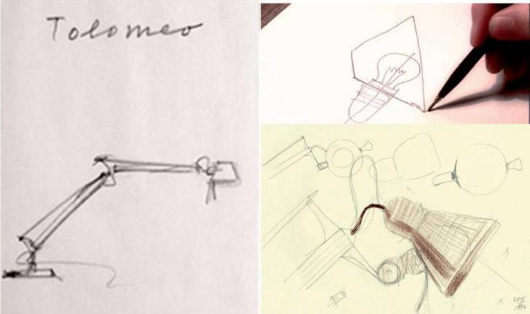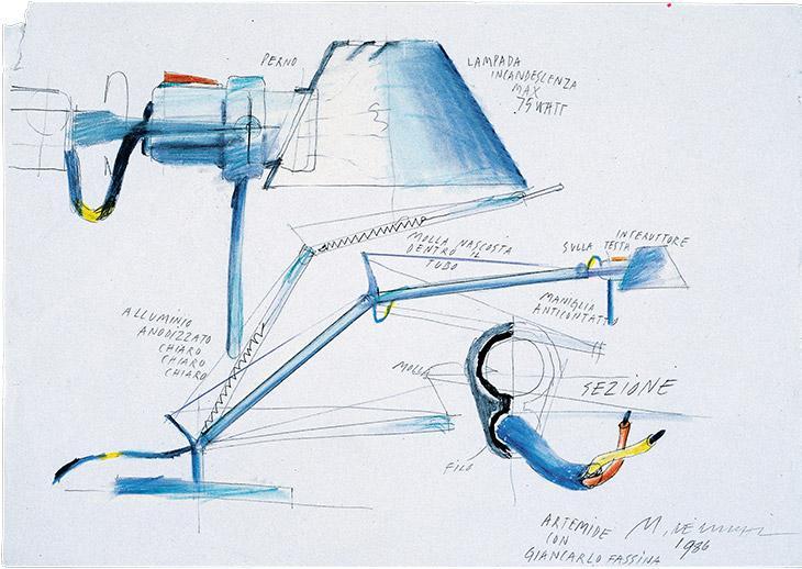 Michele De Lucchi, lampada Tolomeo, 1986-1987, schizzi e disegni vari.