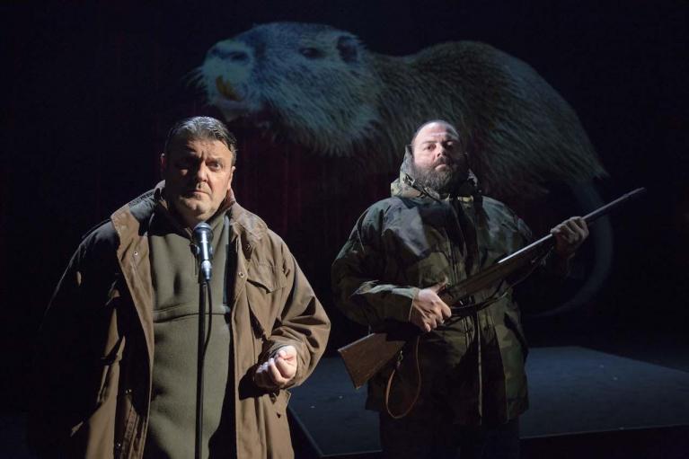 Completa il gruppetto della vil razza dannata Sandro Baravelli (Alessandro Renda), l’imprenditore quasi onesto che fa affari più o meno disonesti, vivendo nel terrore delle intercettazioni. Licia (Laura Redaelli), invece, è la segretaria un po’ scema e un po’ oca del sindaco, che accetta qualunque umiliazione, in cambio di uno stipendio sicuro con cui pagare il corso di Yoga e di Zumba per smaltire lo schifo ingoiato di giorno – il più vero e diffuso paradosso del presente. Rosario e Maria (Salvatore Caruso, Tonia Garante), invece, sono una giovane coppia di gelatai napoletani che emigrano nell’accogliente Emilia Romagna per sfuggire alla devastazione di Napoli, e trovano un altro pizzo da pagare, e denunciano ancora una volta e ancora una volta restano inascoltati, come Benedetti. E poi c’è il contadino bonaccione Olmo Tassinari (Gianni Parmiani), ossessionato dalle nutrie e testardamente cieco di fronte all’evidenza del marcio perché «questa terra ha una lunga tradizione di accoglienza, non scherziamo», e così la colpa dei dissesti non è dell’uomo, come dicono gli ambientalisti, ma della proliferazione di quei maledetti roditori. E c’è anche il Marchesino evocato dal sindaco, il politico rampante partito dalla provincia e arrivato in parlamento, «sorriso da chierichetto pieno di sé, con la battuta sempre pronta, con quell’ego spropositato che ti esce da tutte le parti, con quell’ansia di piacere a tutti, quel rassicurare gli amici e i nemici mentre hai già pronta la corda per impiccarli. Ma come fanno a crederti? Come fanno a vedere in te il nuovo?». Ci ricorda qualcuno?