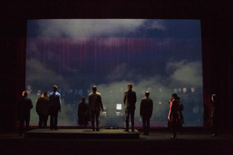 Va pensiero, ultimo lavoro del Teatro delle Albe, coprodotto da Ravenna Teatro con Emilia Romagna Teatro Fondazione, avrebbe dovuto essere, in origine, un lavoro su Giuseppe Verdi. Invece è diventato un nuovo capitolo della serie di opere epico-didattiche delle Albe, quelle lunghe e popolose, corali, nel senso che richiamano a sé tutta la comunità di attori, tecnici e organizzatori della compagnia. Un’altra opera-manifesto con la drammaturgia di Marco Martinelli, come L’Avaro, Pantani, Vita agli Arresti di Aung San Suu Kyi, che sprofonda nell’attualità per condividere nei grandi teatri cittadini (dallo Storchi di Modena, all’Alighieri di Ravenna, per cominciare), una riflessione esemplare sulle miserie del mondo e sul valore dell’eresia; un’opera molto poco postmoderna nella filosofia e nella forma, che fa vibrare – attraverso simboli che si rivelano ustori anche nella società liquida e post-immunologica – l’archetipo emozionante della fiammella che resiste contro il dilagare del male, dell’uno contro i molti, della schiena che non si piega, neanche quando è spezzata: il Davide biblico, il Cristo, il Principe Costante, Aung San Suu Kyi.