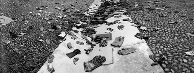 Guardare è il mio mestiere, guardare e far guardare, per la precisione. Per tutto il resto sono pigro. Ma ho paura però, paura che il talento si appiccichi anche alla mano sinistra (non è pericolo da escludere: pensate, agli ambidestri: non vorrei mai diventare uno di loro). Così, attratto da un cantiere dismesso, da una cava deserta o da una fabbrica fallita, vagolando con le mani rigorosamente in tasca, mi guardo in giro e incappo a volte in un guanto da lavoro per terra. Destro o sinistro, fa lo stesso, tutti portano traccia del loro antico contenuto. Ma devo stare attento; non amano la pubblicità: chi senza un dito, chi rigido come uno stoccafisso, chi pieno di buchi, si mimetizzano nella polvere o nel fango dove sono stati abbandonati. Ci vuole occhio a scoprirli: è il mio mestiere.