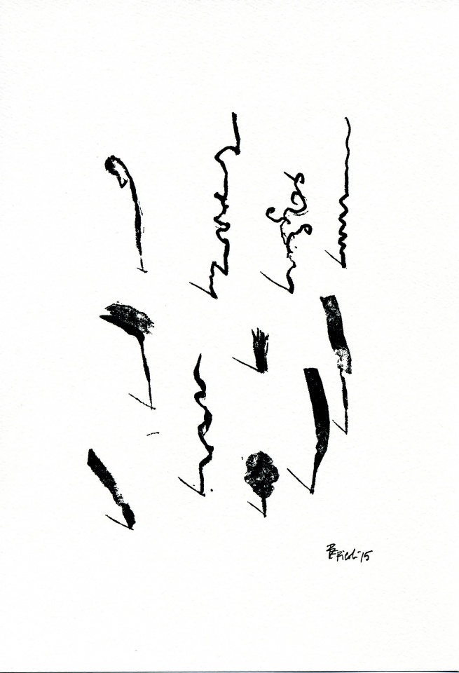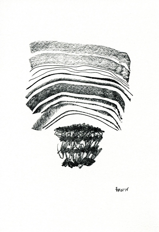 Anche qui. Il libricino, stampato in un numero limitato di copie, è accompagnato da un raccoglitore dove ci sono sessanta piccoli fogli, su cui Pericoli ha tracciato segni con la matita. L’ha fatto ascoltando l’Incompiuta di Schubert diretta da Muti. Ha usato la matita come se fosse la bacchetta del direttore d’orchestra e ha dato forma ai suoni con i segni, dice. Se non si sapesse che c’è questa musica dietro i segni – prima dei segni – sarebbe probabilmente la stessa cosa. Sono linee, tratti, scarabocchi, sgorbi, strofinamenti, tracce. Ogni foglio è diverso dall’altro; il disegnatore è ritornato nella caverna originaria, munito della sua matita, e l’ha punta sulla parete. In modo impulsivo, irrefrenabile, senza progetto, così come gli veniva, seguendo solo il suo istinto o la sua volizione. Il risultato è quello che Di Napoli chiama “visione eidetica” propria dei bambini, dei primitivi e degli artisti, visione periferica che fa emergere qualcosa che appartiene alle regioni profonde della psiche.