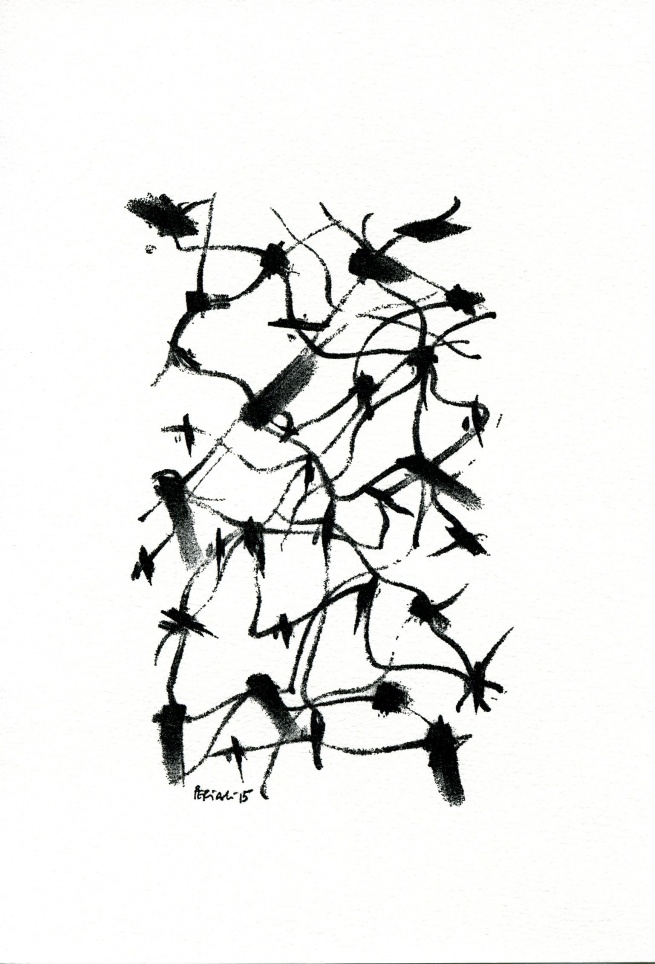 Quella collezione di segni sui fogli offerti dall’editore milanese al sesto dito del disegnatore marchigiano non si sa bene cosa sia. Proprio perché indefinibili, i segni rendono visibile la sua visione (“il disegno rende visibile la visione stessa”, ha scritto Merleau-Ponty). Pericoli ha tracciato dei disegni che l’occhio non vede. Gesti incontrollati prodotti da una mano duttile, morbida, sicura, e al tempo stesso incerta e zoppicante. Ha danzato sui foglietti al seguito di quel brano musicale che ha avuto il merito di liberare la sua mente da ogni problema cognitivo. Gesto irruente anche quando è esitante. Questi sono i più bei disegni che Tullio Pericoli ha fatto nel corso della sua lunga carriera. Ha distrutto lo spazio ottico del pittore e del disegnatore che abitano in lui creando uno spazio manuale puro. Si è liberato di tutto, lasciando che il sesto dito, la matita, facesse da sola seguendo Schubert, e oltre.
