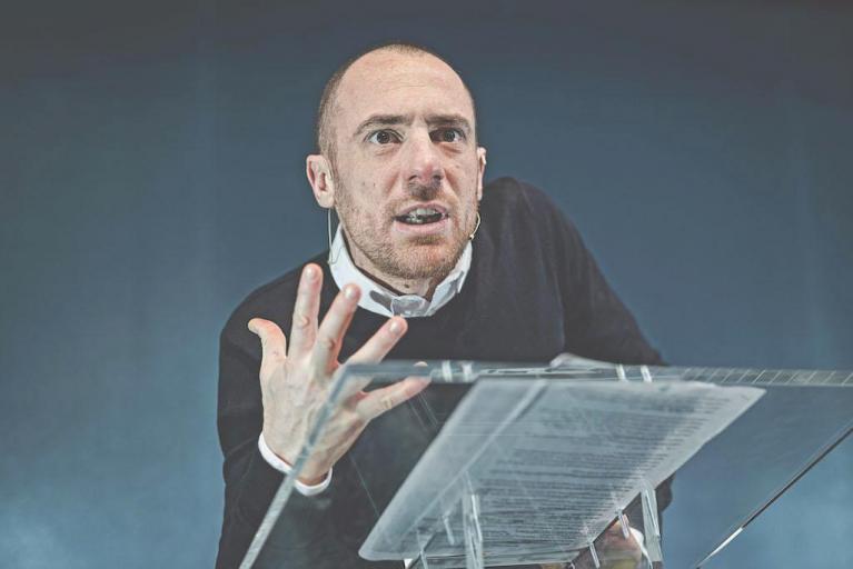 GERMANO: Qui il pubblico all’inizio non capiva a che tipo di spettacolo stesse assistendo. Puntavo a chi arrivava a teatro sulla fiducia. E proprio questo ‘sulla fiducia’ che è la zona inquietante, da cui partivano le riflessioni che mi hanno spinto a scrivere lo spettacolo… Mi trovavo davanti a un tipo di pubblico già affezionato e questa è una zona che mi colpisce molto, quanto noi decidiamo che siamo fan oppure oppositori di una persona e abbattiamo qualsiasi possibilità critica su quella persona, sul suo pensiero o sulla sua arte. Già ‘ci piace’, siamo col pollice in su, o ‘non ci piace’, riducendo le relazioni al linguaggio dei social. Io avevo già gli spettatori dalla mia parte. Entravo alle spalle del pubblico e cercavo, senza interpretare un personaggio, un tono reale, di conversazione. Il mio intento era quello di illudere gli spettatori che non ci fosse rappresentazione, che io entrassi in maniera inedita per parlare davvero con loro. Anche perché il titolo La mia battaglia poteva suggerire che ci sarebbero state dichiarazioni politiche della serie ‘scendo in campo’, che fosse un momento in cui Elio Germano andava in giro per l’Italia a spiegare le sue convinzioni o che cosa non andasse nel Paese... Giocavo anche su un altro tipo di fraintendimento, per cui all’inizio si rideva, poteva sembrare una forma di stand-up comedy. Poi i discorsi cominciavano a prendere una piega seria, cominciavo a esporre le mie tesi politiche, che per alcuni potevano essere convincenti, anzi alcuni non vedevano proprio l’ora di sentirle; altri già dopo una ventina di minuti, una mezz’ora, si chiedevano perché avessero pagato un biglietto per assistere a questo tipo di esternazione. E se non se lo chiedevano era pure significativo. Quando giravamo – era il periodo delle ultime elezioni – rimanevo colpito dal fatto che nelle stesse sale poco prima erano passati Salvini, Beppe Grillo, Renzi, a fare più o meno lo stesso tipo di spettacolo, con un finale probabilmente diverso, ma l’inizio e i tre quarti erano uguali, fare battute e arrivare di volta in volta ad avanzare temi facendoli passare per la cosa più giusta, cercando di conquistare il pubblico, ricevendo spettatori accorsi sulla fiducia. Per me è stato molto faticoso: andavo a violentare persone che si fidavano di me. È stata una cosa inquietante essere additato come leader o essere invitato a candidarmi… Qualcuno mi diceva, a priori: io la penso come te, senza sapere minimamente chi io sia, basandosi soltanto su affermazioni di interviste… Volevo rovesciare questa inquietudine, e in qualche modo l’ho fatto. Spero che le persone non si siano offese ma che sia servito a valutare una posizione che io oggi ritengo di estremo pericolo, il bisogno di leader. Li cerchiamo, e basta che una persona ci faccia ridere o ci piaccia che le deleghiamo il nostro pensiero o, al contrario, decidiamo che non ci piace, a prescindere da quello che fa.