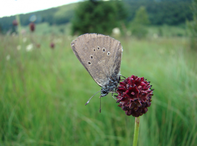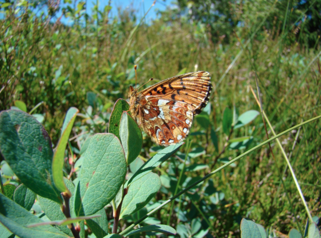 Ma qui sugli sfagni vi sono farfalle di maggiore interesse, più rare e, grazie alle peculiarità botaniche delle torbiere, preservatesi solo in questi piccoli ambienti palustri. Alcune sono autentici relitti post-glaciali, ovvero creature così specializzate e legate alle piante nutrici dei loro bruchi, da non potersi diffondere al di fuori dell’ambiente a torbiere, mirtilli e sfagni. Quando i ghiacci si ritirarono dall’Europa continentale, queste specie progressivamente migrarono verso la tundra circumpolare, ma alcune sopravvissero come relitti in queste aree paludose che persistettero dopo la scomparsa dei ghiacci del quaternario. E così, ai margini delle torbiere del Giura, un giorno di fine maggio, insieme all’amico Piscopo che per la prima volta affrontava con timore reverenziale queste paludi finendo a mollo con i piedi, trovammo una bellissima farfallina dal color nerastro con vaste macchie aranciate e azzurre, una piccola meraviglia. Era la rara Lycaena helle, una specie che vive solo in questi ambienti. E poco più avanti nella stagione mi imbattei in un’altra rarità: la velocissima Boloria aquilonaris, anche questa davvero poco comune, legata come è alla sua pianta nutrice, il mirtillo di palude. Non se ne vedono molte di queste farfalle, roba per palati sopraffini e veri appassionati.