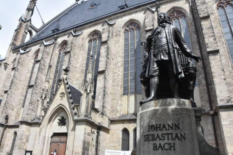 La statua di J.S. Bach accanto alla chiesa di San Tommaso a Lipsia (foto R. Copello).