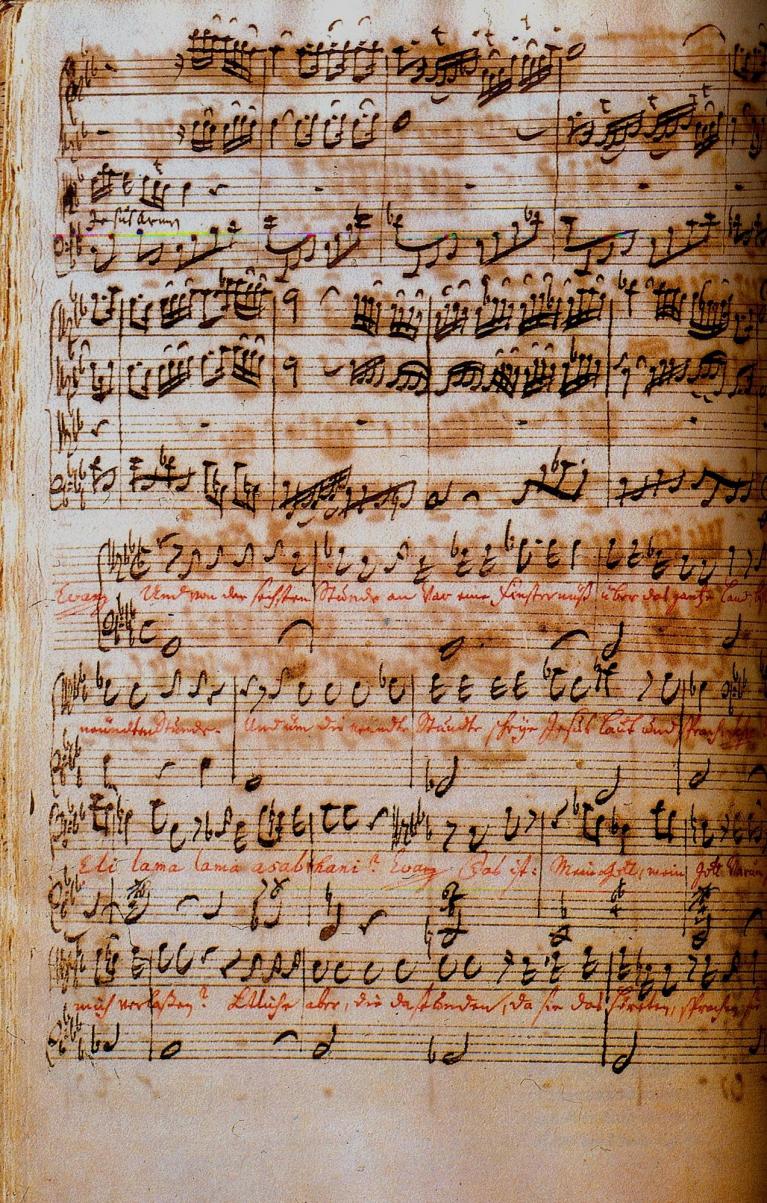 Una pagina della partitura autografa della Passione secondo Matteo (1736).