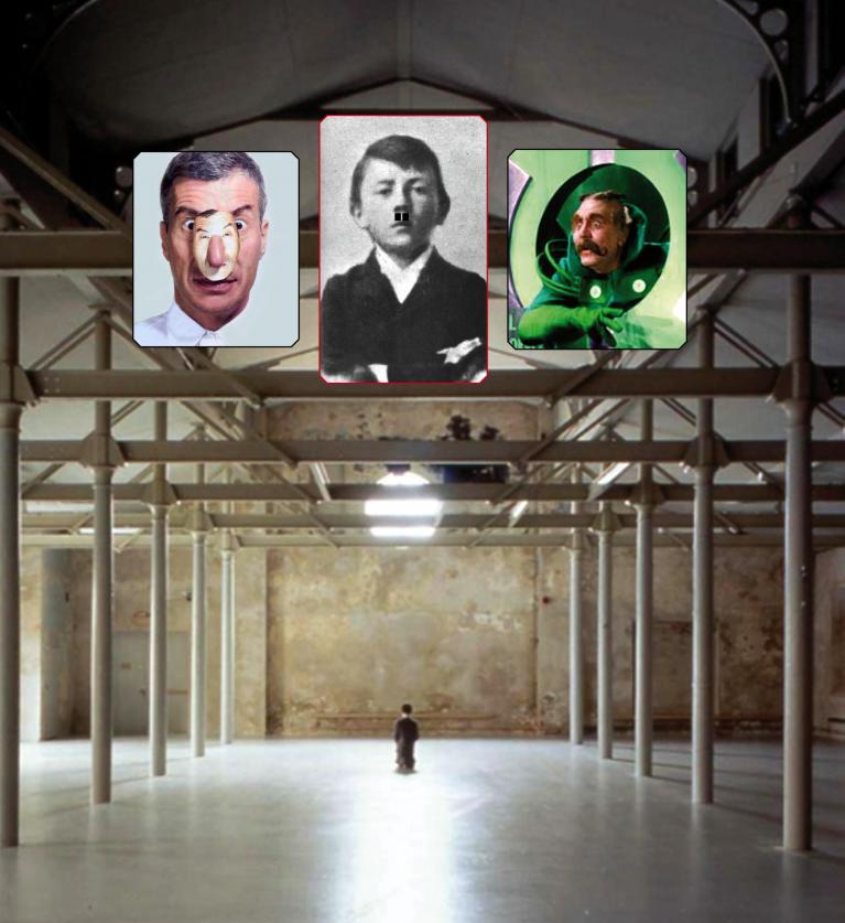Nel caso del Mago, però, la faccenda era più seria, perché Lui non ha una sola faccia, ma una girandola infernale di facce. «Se lo disegnassimo ai margini di un proscenio, inginocchiato, come il committente degli affreschi nelle pale degli altari?» «Sì. Ma dovrà essere sia crudele che devoto». «E anche un po’ rubato alla storia, o alla storia dell’arte…» «E se citassimo… » «… Him di Maurizio Cattelan?»