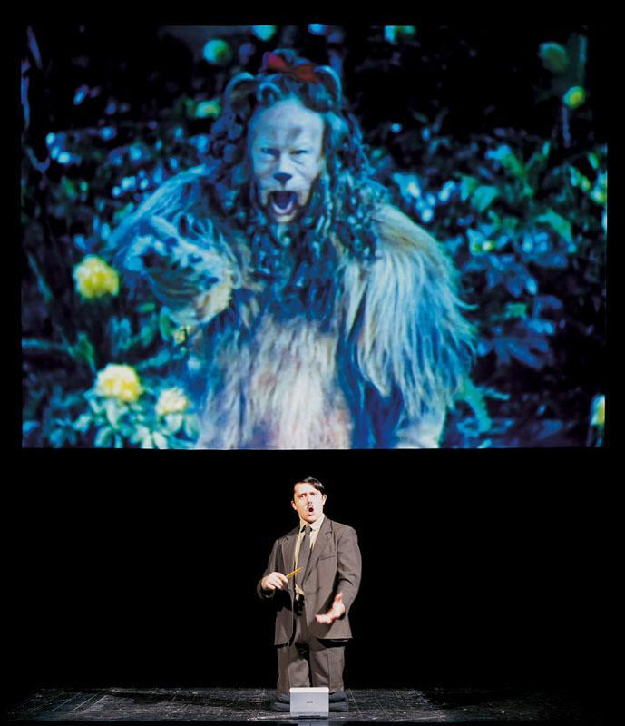 Sono le nove e un quarto, Marco Cavalcoli a quest’ora è appena salito sul palco, al buio, agile come una pantera e si inginocchia davanti al pubblico. È identico a Him, la scultura di Cattelan, mi pare di vederlo anche qui, nel mio salotto: stessi baffetti, stesso vestito. Avrà da poco iniziato il suo doppiaggio forsennato. Ora sarà Dorothy, mentre canta al di là dell’arcobaleno. Adesso starà ridendo, sguaiatamente e orrendamente, come la Strega dell’Ovest. Tra poco sarà un maiale che grufola. Presto sarà soltanto il vento.
