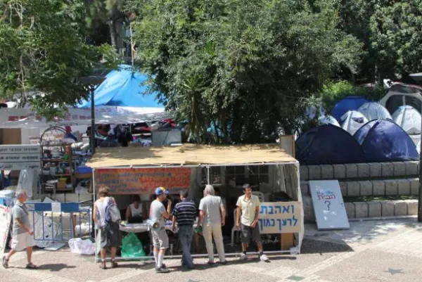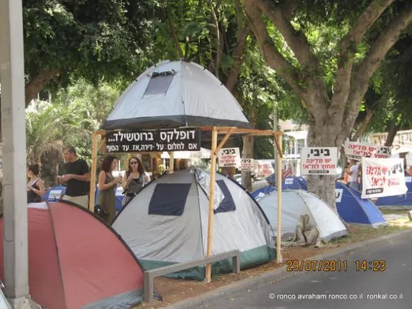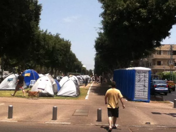 Si assiste così al formarsi di una vera e propria vita comunitaria: e se in pochi giorni non ci si sorprende più alla comparsa di divani, forni a microonde, tappeti e stendi biancheria, sorta di grande campeggio cittadino, si fatica a resistere allo stupore quando a tutto questo si affiancano bagni chimici messi a disposizione dalla ditta che li produce, scaffali colmi di libri forniti da librerie cittadine, banchetti di consultazione dove avvocati esercitano la propria professione, enormi congelatori comunitari, tende tutte uguali una in fila all’altra concesse da una ditta di prodotti da campeggio; o se, chiacchierando con chi è intento a cambiare il pannolino della propria bambina in un fasciatoio posizionato nel bel mezzo della elegante passeggiata cittadina di Rothschild Avenue, si viene a sapere che i proprietari di gran parte delle abitazioni affacciate sulla via, piuttosto che lamentare l’ingorgo di traffico e il rumore costante provocato dalla manifestazione, aprono le porte delle loro case per eventuali necessità.