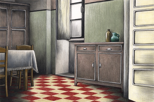 alcuni ambienti (la casa di Carla, l'ufficio, la casa di Pratek), ma anche per restituire le emozioni della storia o qualcosa che a volte nel testo non c'è (la foto del marito della vedova Dondi). Come hai