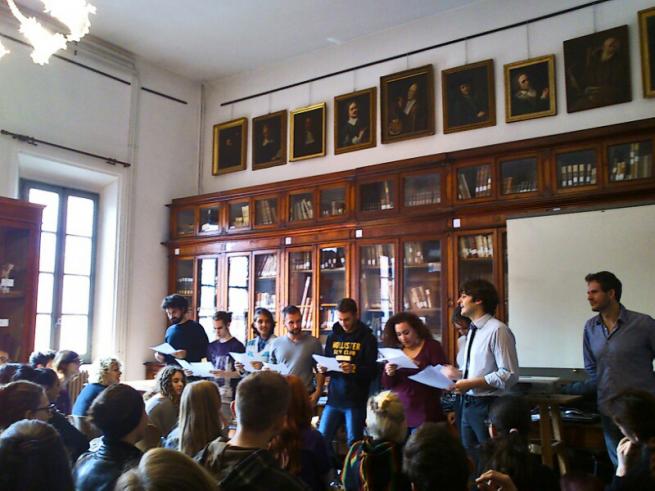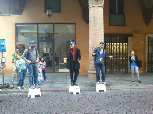 A Modena Il ratto è stato presentato alla fine di ottobre con una settimana di lavoro che ha coinvolto 58 associazioni di diverso tipo, culturali, del volontariato, sportive, religiose (di differenti confessioni), con letture, laboratori, concerti, performance, incontri, dibattiti. Si andava dalla biciclettata in luoghi di particolare risonanza storica, con fermate e racconti, a concerti, a letture e interventi nelle scuole, a azioni di informazione con i metodi dell’agit-prop o del flash-mob, a scambi di ricette, a narrazioni che scavavano la memoria della guerra e del dopoguerra, a incontri sulle identità d’Europa e sulle questioni religiose e razziali. E c’era molto altro. Gli attori si sono trasformati in provocatori di energie, raccoglitori di idee, animatori di nuove esperienze.