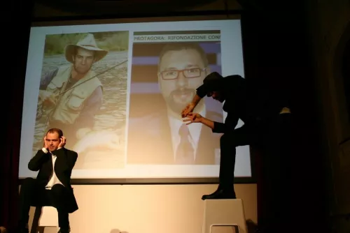 La filosofia si addice al teatro. Claudio Longhi fonde vari dialoghi di Platone in uno spettacolo vivacissimo, Il sofista, che inizia provocatoriamente con immagini di talk show, con un Marco Travaglio sfinge e un Giuliano Ferrara profeta cinico a dividersi lo schermo, intervistati da un ammiccante Enrico Mentana. Sofisti, opinionisti, intellettuali (TUI: Tellekt-Ual-In, li ribattezzava Brecht nelle sue cineserie metaforiche):spacciatori di false verità?