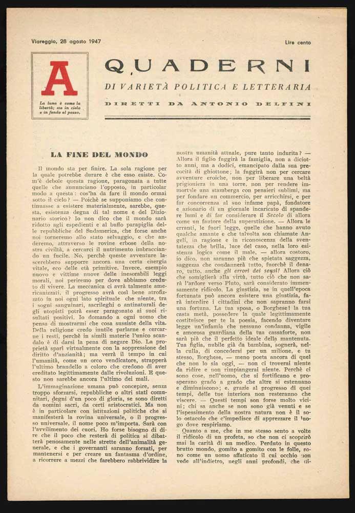 Assumo allora in senso ironico quanto Delfini scrive in Critica letteraria, pezzo apparso nel 1947 sull’effimera rivista «A. Quaderni di varietà politica e letteraria», da lui fondata a Viareggio. Assumendosi il compito di curare lo spicchio della critica – e firmandosi come Ulisse Quattrogatti – Delfini biasima i critici che «quando ascoltano, non odono; quando guardano, non vedono; quando riflettono, non pensano; quando assaggiano, non gustano». Non ha del tutto torto, e le qualità che richiede al critico andrebbero proprio applicate nel prendere in considerazione il volume che contiene lo scritto: la nota raccolta degli scritti occasionali per giornali e riviste che Garzanti, dopo la prima edizione del 1997, riprende ora con la medesima curatela e prefazione di Cesare Garboli: Manifesto per un partito conservatore e comunista e altri scritti (Garzanti, 2022, pp. 322, euro 20).