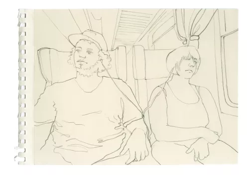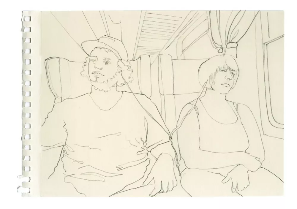 L’immagine sfocata dei due resta impressa sotto le palpebre, in mezzo ai depositi di proteina che danzano. Non capisco cosa non mi faccia dormire. Qualcosa nella coppia deve avermi colpito, a parte il cappellino, ma continuo a tenere gli occhi chiusi. Tendo l’orecchio e non sento nessun suono. So che sono ancora lì, ma non si scambiano neppure una parola. Nonostante il caldo e tenendo sempre gli occhi chiusi, mi copro il viso con la sciarpa per permettermi di osservare senza essere vista.