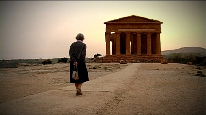 Andai in Sicilia per girare un reportage su di lei. Michał Rusinek, il suo segretario, mi avvertì che avrei potuto filmare gli incontri ufficiali, ma che per il resto si sarebbe visto sul momento. I primi tentativi non furono incoraggianti. La signora Wisława con grande gentilezza, ma con altrettanta decisione, distoglieva sistematicamente lo sguardo dall’obiettivo. “Può forse leggerci una poesia?” A Taormina, seduta su uno scalino del teatro greco. Un attimo di esitazione. “No, qui è troppo bello, diventerebbe banale”. Invece di filmare una poesia andammo a prendere un caffè. La presenza della macchina da presa non le piaceva mai, ma ogni tanto smetteva di farci caso. La svolta avvenne a Corleone. Ci andammo per un unico motivo, chiaro a chiunque la conoscesse bene, ma per tutti gli altri impossibile da capire, perché quello che aveva in mente la poetessa era un percorso decisamente tortuoso disseminato di singole fotografie con il nome di città che non aveva mai avuto la minima intenzione di visitare. Sotto il cartello che segnala “Corleone”, la signora Wisława estrae un foglio, si volta verso la macchina da presa, e legge un limerick scritto apposta per l’occasione: