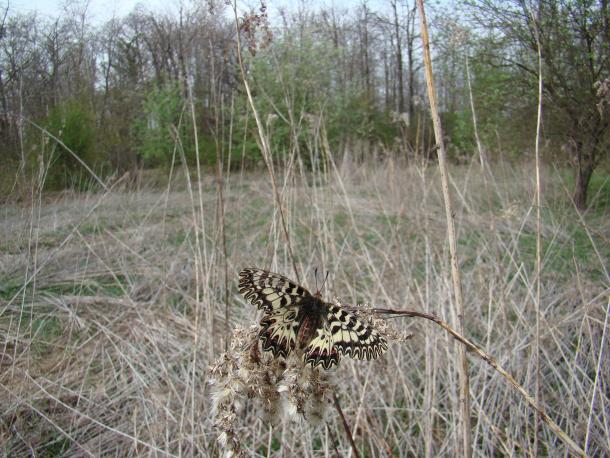 Il pasto fu gradevole, ma la mente era distratta dall’assenza della Zerinzia e gli occhi scandagliavano intorno a cercarla. Dopo il pasto, si continuò a perlustrare la zona facendo chilometri a piedi quel giorno senza trovare nulla. Fu alla fine del pomeriggio che, improvvisamente, mentre attraversavo un campo di erbacce e dopo aver osservato un tritone nello stagnetto vicino, vidi un essere strano, grigio-giallastro involarsi rapido dalle erbe, planando elegante ma ben più basso e piccolo rispetto al noto Macaone, suo cugino. Quando l’ebbi nella rete, non ci volle molto a capire che era la nostra Zerinzia e si festeggiò con grandi canti e inni, come si fa quando la specie rara è ottenuta. Così la ricerca si era conclusa con successo: era un esemplare un po’ invecchiato, pallido, non brillante di giallo luminoso come lo si attendeva, ma era lei. Rientrammo a casa contenti ma decisi a tornare in quel campo l’indomani. E così si fece. Il giorno dopo, in quel campo, trovammo una dozzina di Zerinzie fresche e brillanti proprio come l’esemplare del nostro manuale. Il motivo per cui il giorno prima non vedemmo che una sola Zerinzia rimane un mistero, come tanti nel nostro mondo delle farfalle. Ciò che importava è che la Zerinzia davvero viveva a poca distanza da casa nostra, sulla Serra, in un ambiente caldo e secco, o xerico come si dice tecnicamente. Ma era rara, poco comune, localizzata, legata alla sua piantina nutrice, quell’aristolochia che colonizza solo alcuni ambienti, appunto, xerici.